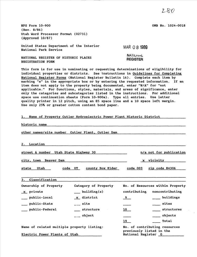 Electric Power Plants of Utah MPS