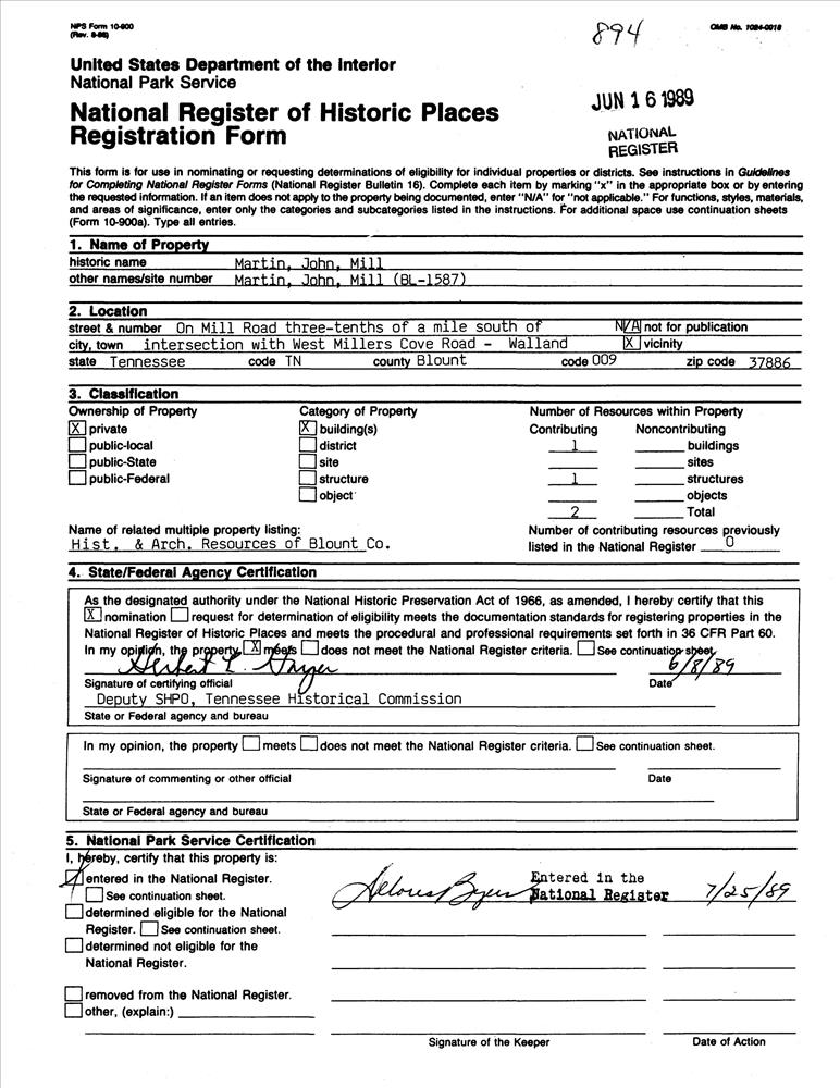 Walland ; Mill Rd., 0.3 mi. S of W. Millers Cove Rd.