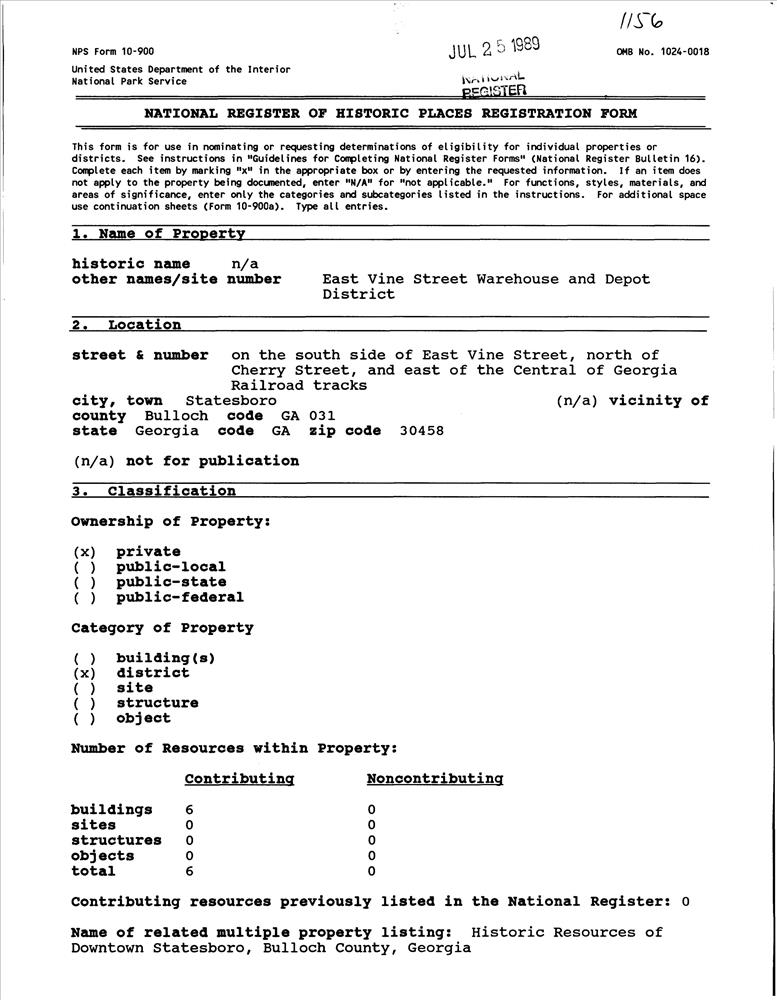 Statesboro ; Roughly bounded by E. Vine St., Central of Georgia Railroad tracks, and Cherry St.