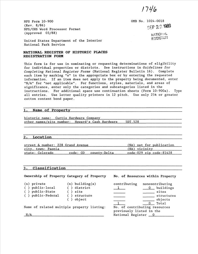 Paonia ; 228 Grand Ave.