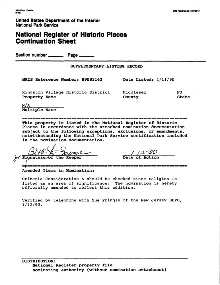Kingston ; Roughly NJ 27 from Raymond Rd. to Delaware & Raritan Canal, Church St., Laurel Ave., Heathcote Brook Rd., & Academy St.