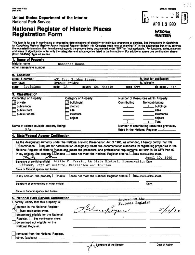Breaux Bridge ; 431 E. Bridge St.