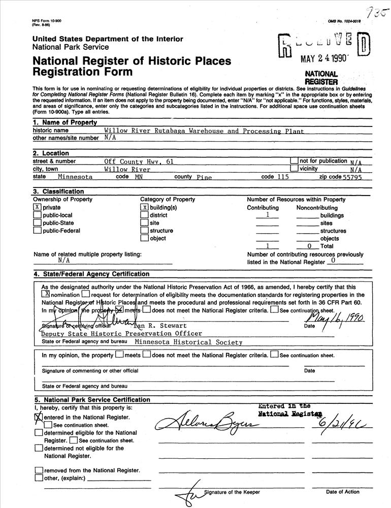 Willow River Rutabaga Warehouse and Processing Plant