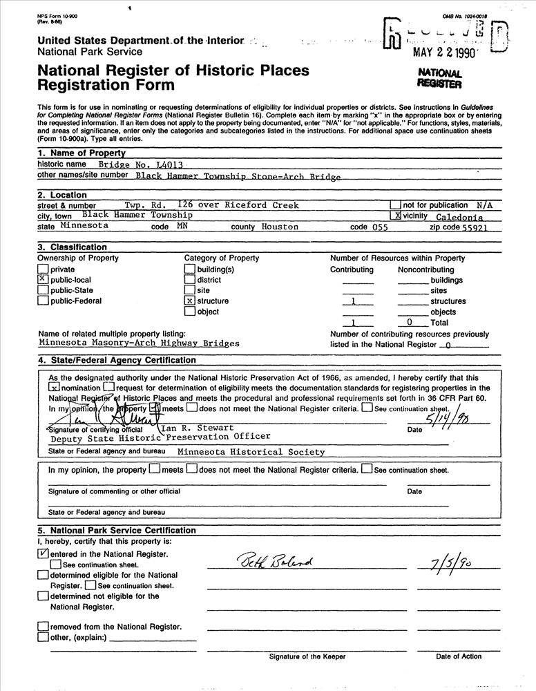 Spring Grove ; Twp. Rd. 126 over Riceford Cr.