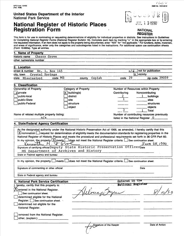 Crystal Springs ; Old Hwy. 51 N. of jct. with MS 27