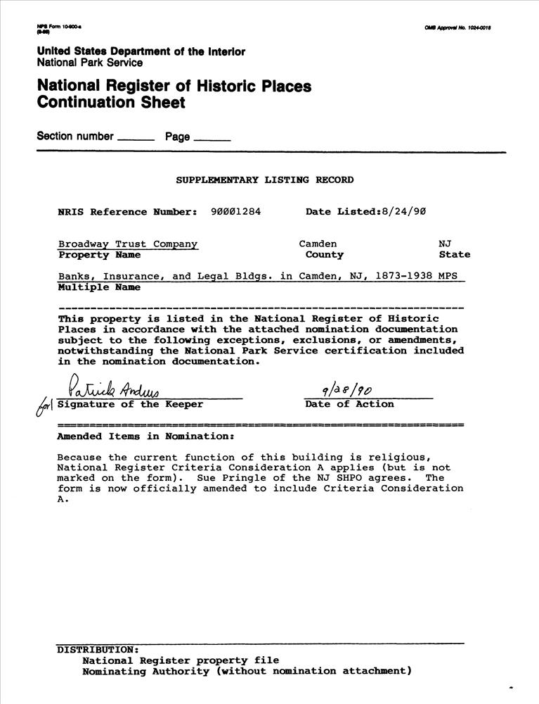 Banks, Insurance, and Legal Buildings in Camden, New Jersey, 1873-1938 MPS