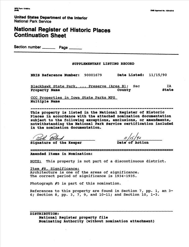 CCC Properties in Iowa State Parks MPS