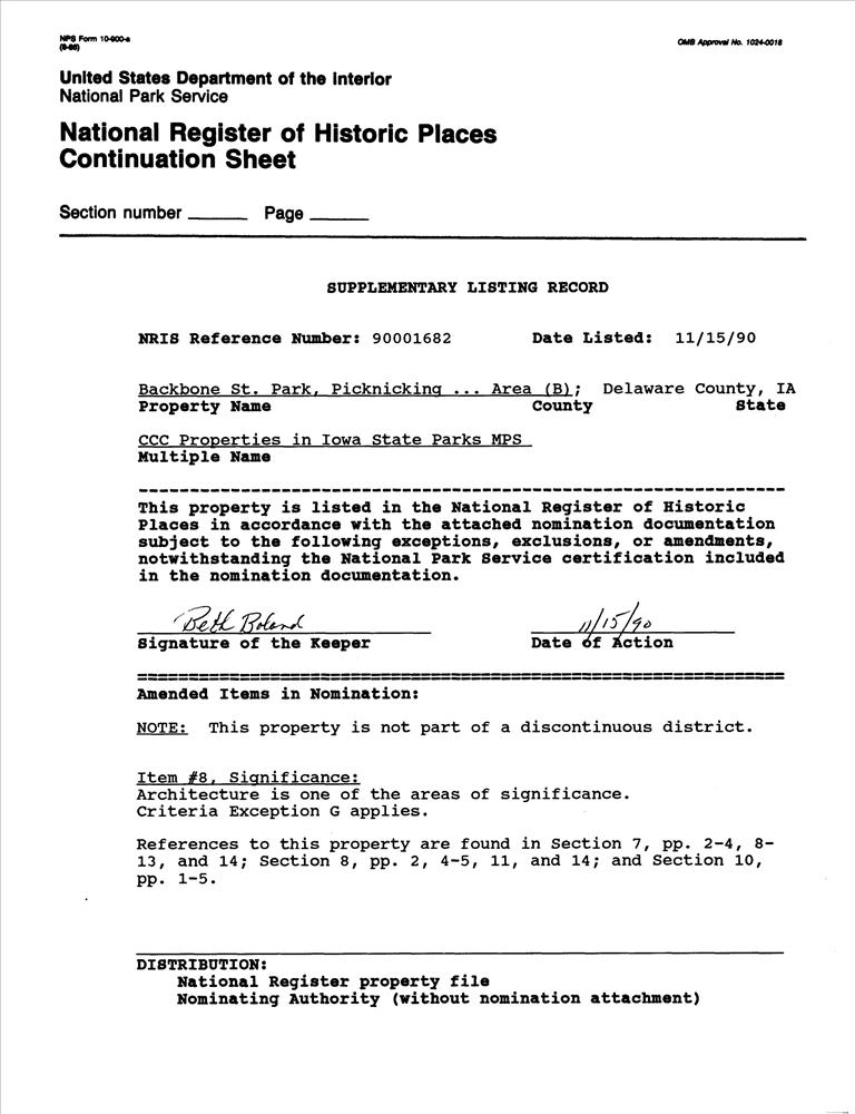 CCC Properties in Iowa State Parks MPS