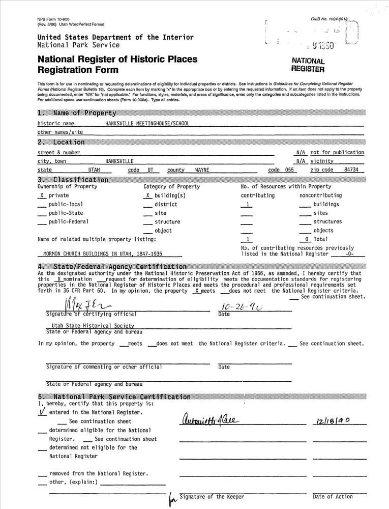 Hanksville Meetinghouse--School