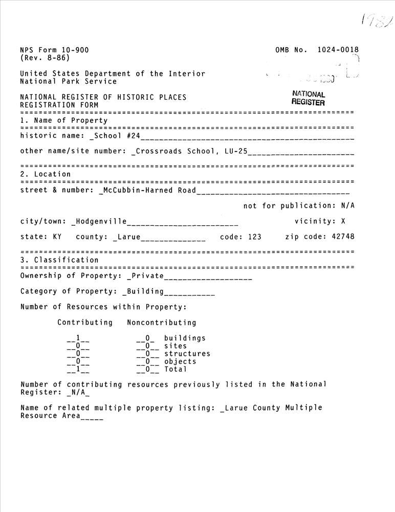 Hodgenville ; McCubbin--Harned Rd. N of jct. with KY 222
