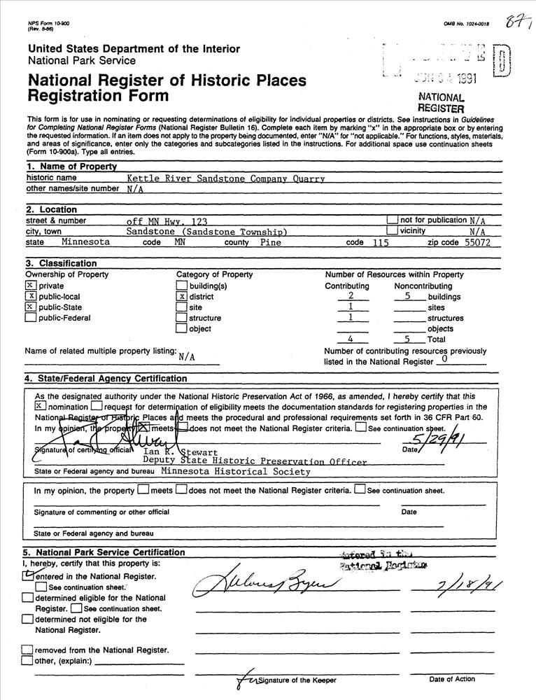 Kettle River Sandstone Company Quarry