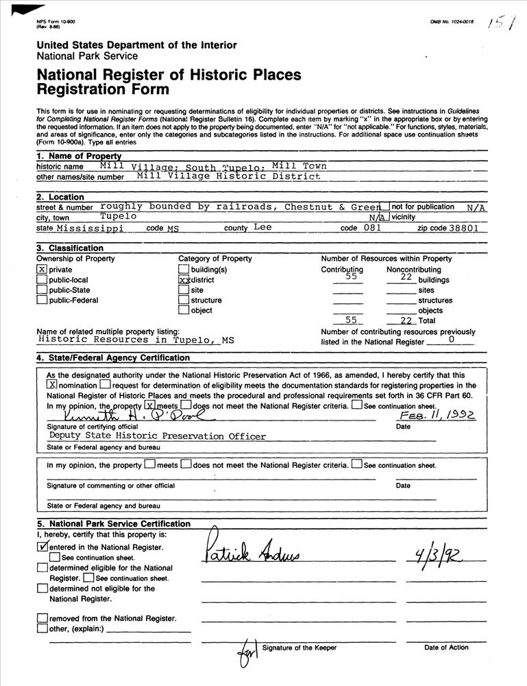 Tupelo ; Roughly bounded by the Illinois Central RR and St. Louis--San Francisco RR tracks, Chestnut and Green Sts.