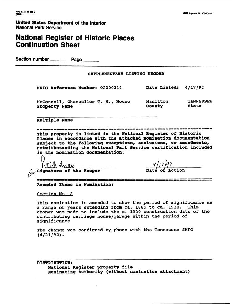 McConnell, Chancellor T. M., House