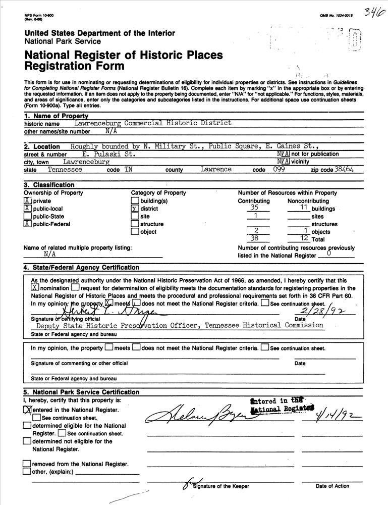 Lawrenceburg ; Roughly bounded by N. Military St., Public Sq., E. Gaines St. and E. Pulaski St.