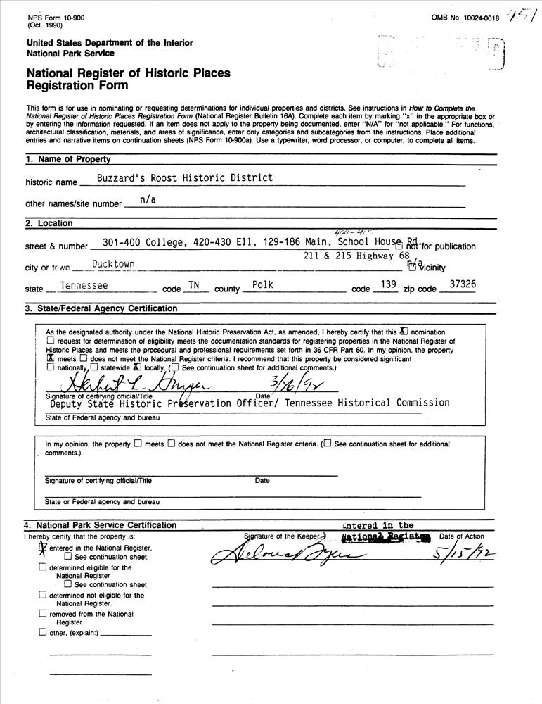 Ducktown ; 301--400 College, 420--430 Ell and 129--186 Main Sts., 400--415 School House Rd. and 211 and 215 TN 68