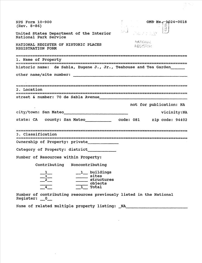 De Sabla, Eugene J., Jr., Teahouse and Tea Garden