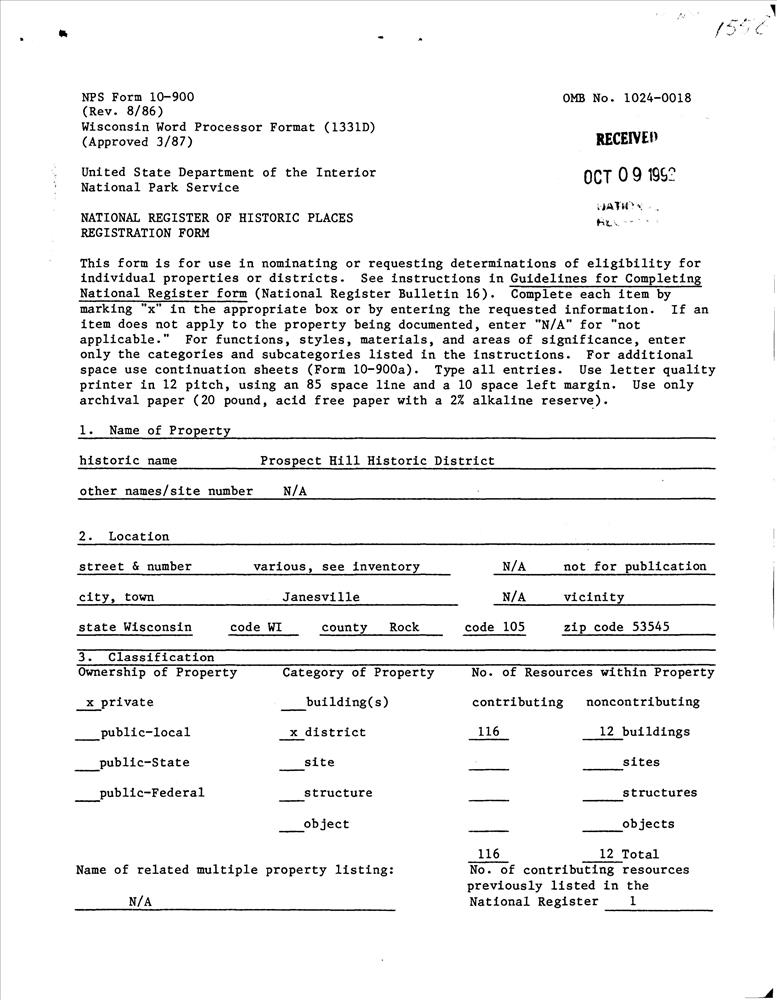 Janesville ; Roughly bounded by Eisenhower, Prospect and Atwood Aves., Milwaukee St., Parker Dr. and Centerway