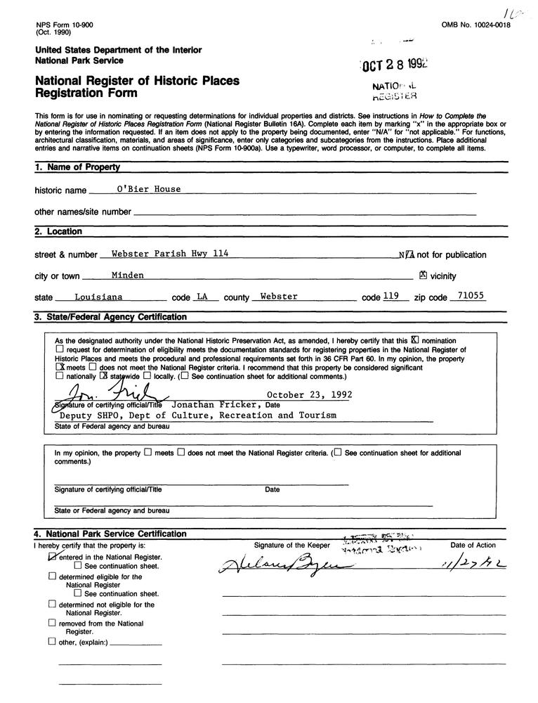 Minden ; Webster Parish Hwy. 114, N of Minden