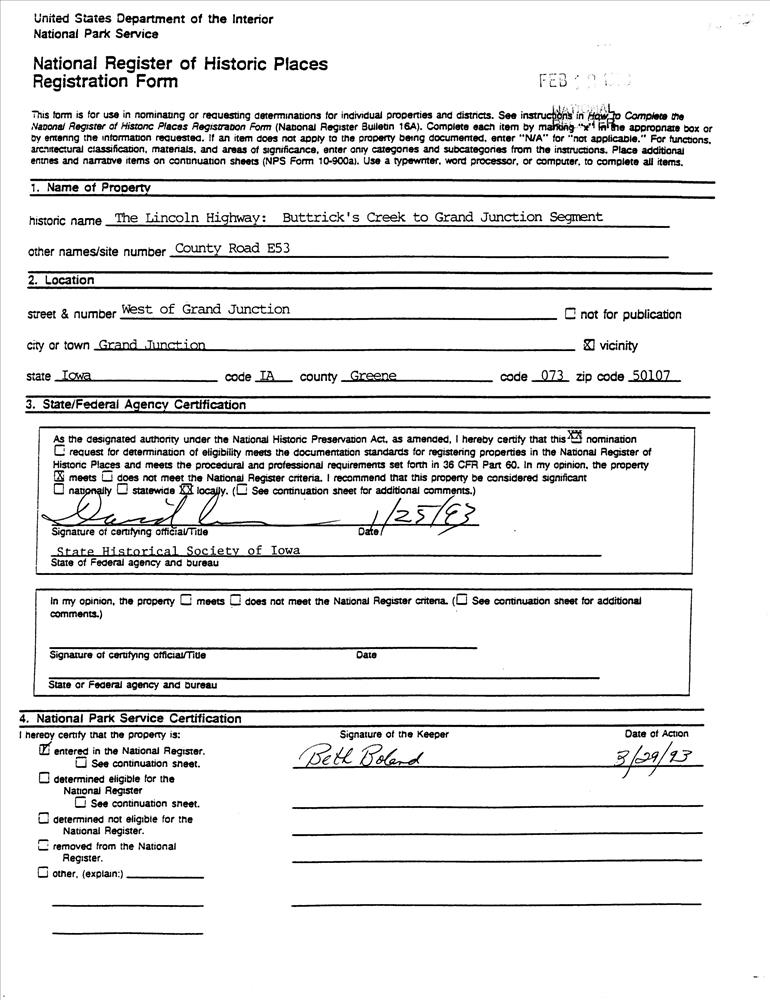 Lincoln Highway--Buttrick's Creek to Grand Junction Segment