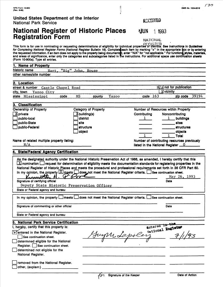 Yazoo City ; Castle Chapel Rd., SE of Yazoo City