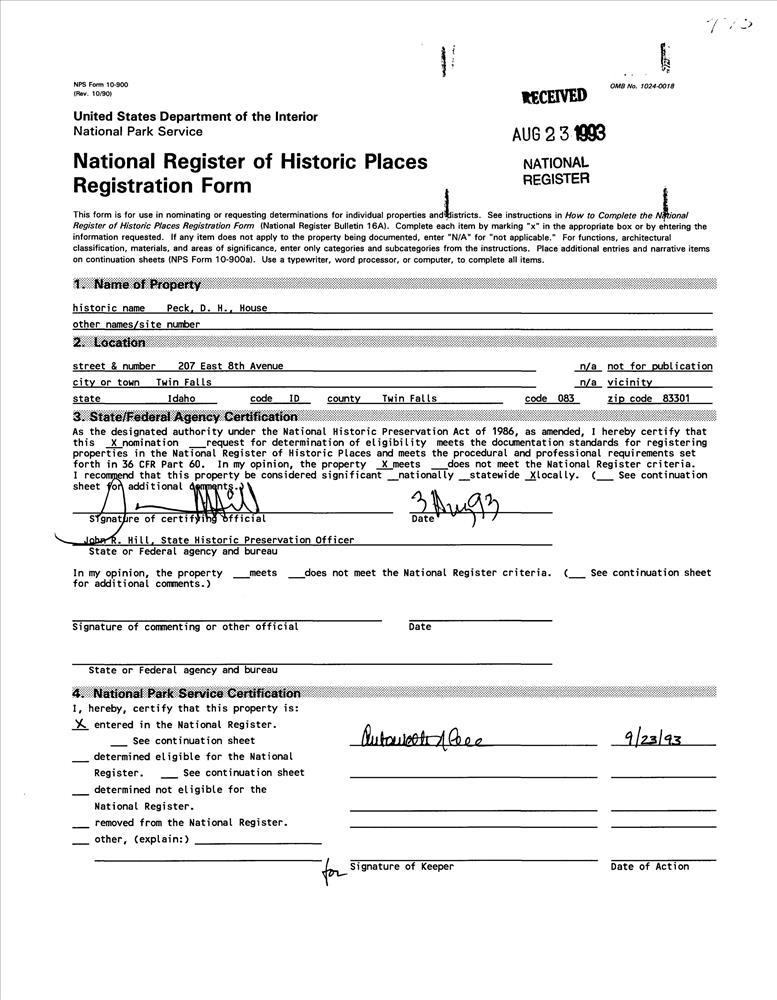 Peck, D. H., House