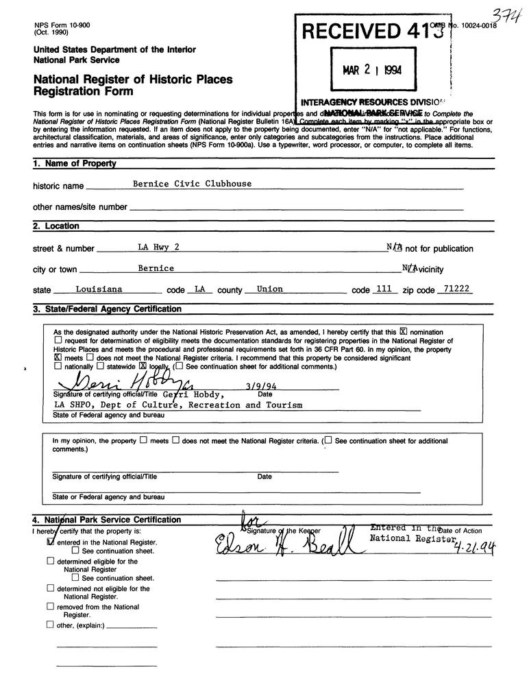 Bernice Civic Clubhouse