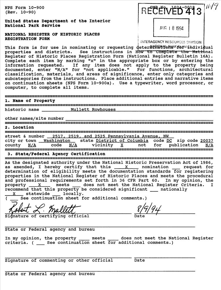District of Columbia ; Washington ; 2517, 2519 and 2525 Pennsylvania Ave., NW.