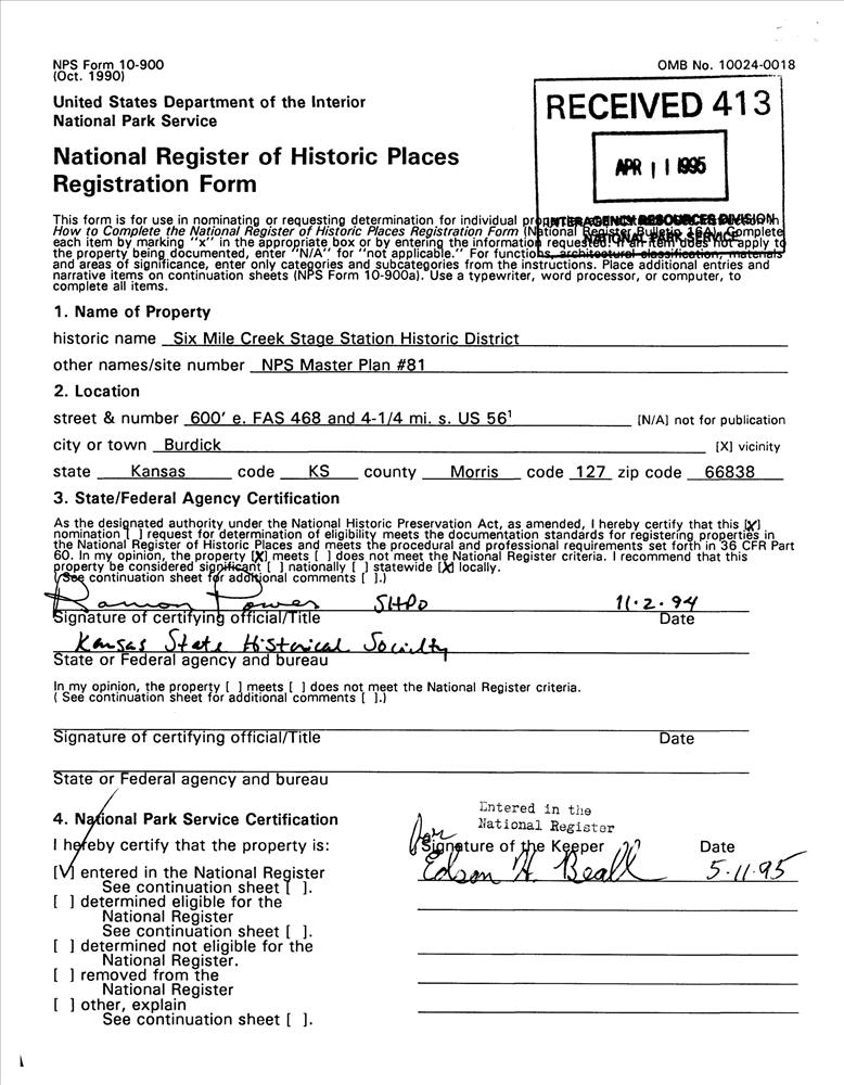 Six Mile Creek Stage Station Historic District