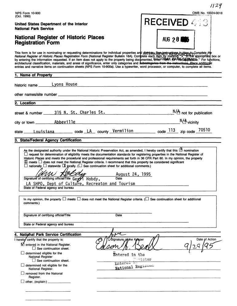 Abbeville ; 315 N. St. Charles St.