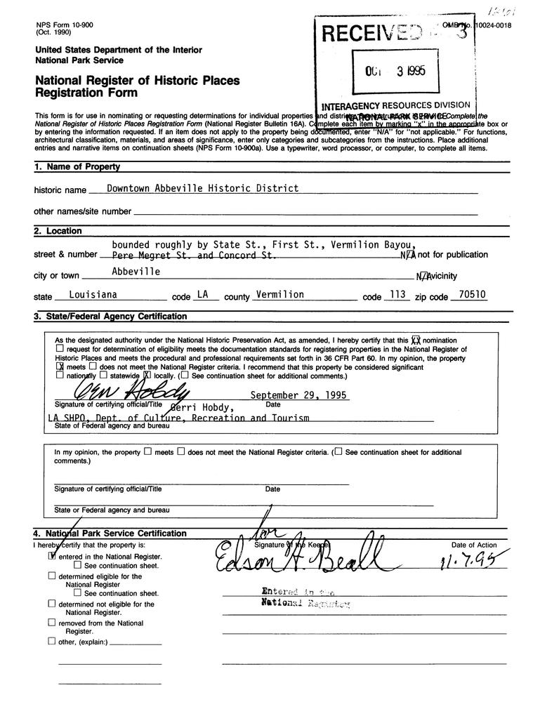 Abbeville ; Roughly bounded by State and First Sts., Vermilion Bayou, Pere Megret and Concord Sts.