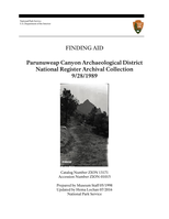 This is the finding aid for the Paruniweap Canyon Archaeological District National register Archival Collection.National Register of Historic Places Registration Form, b/w photographs, maps, memoranda, letters, and associated documentation related to the Parunuweap Canyon Archaeological District.The Parunuweap Canyon Archeological District includes ruins dating all the way back from 500-1150 AD. These ruins come from Ancient Pueblo People and Virgin Anasazi peoples.On November 7th, 1996, this site was listed on the National Register of Historic Places. The reference number is 96001235.