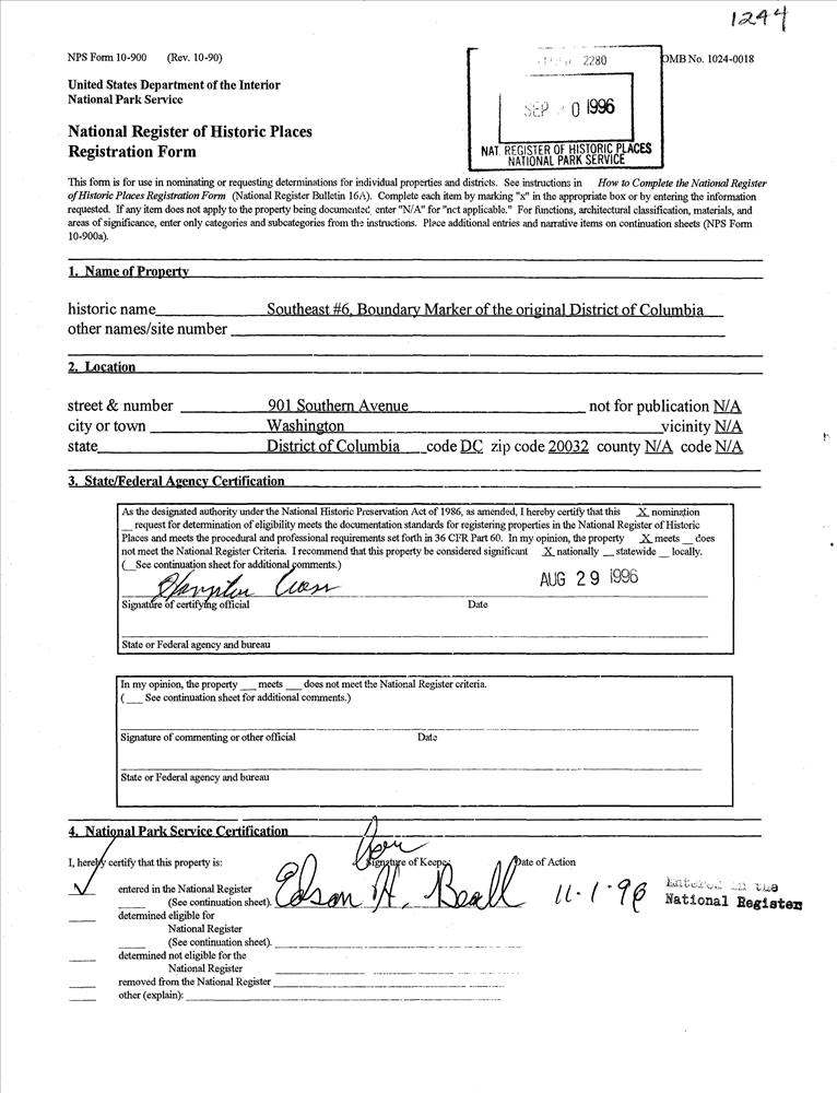 Southeast No. 6 Boundary Marker of the Original District of Columbia