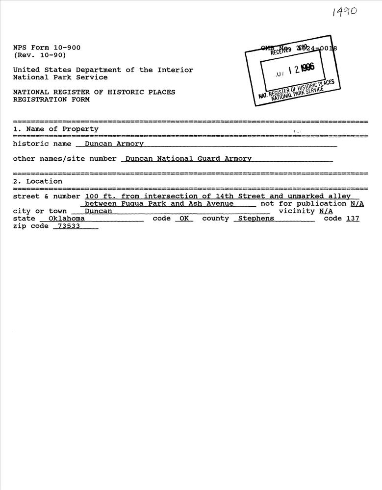 Duncan ; 100 ft. from jct. of 14th St. and unmarked alley between Fuqua Park and Ash Ave.