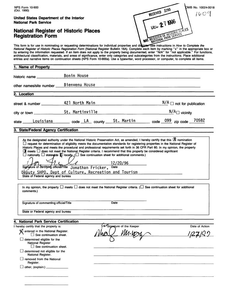 St. Martinville ; 421 N. Main St.