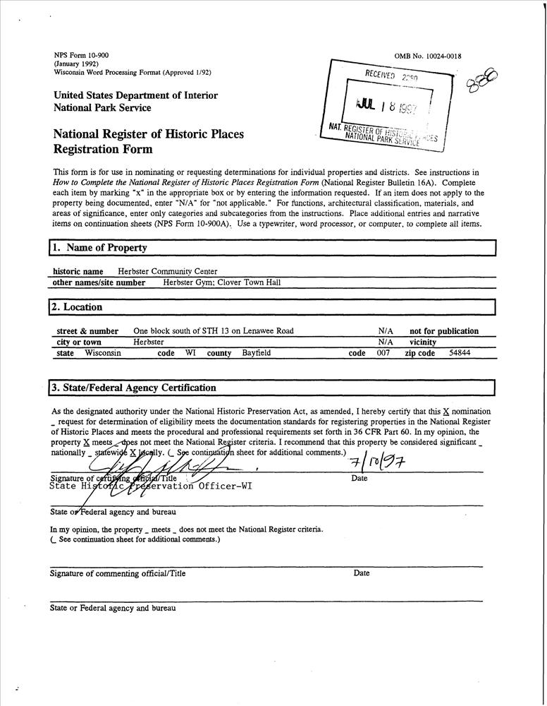 Herbster ; Lenawee Rd., S of jct. of Lenawee Rd. and WI 13