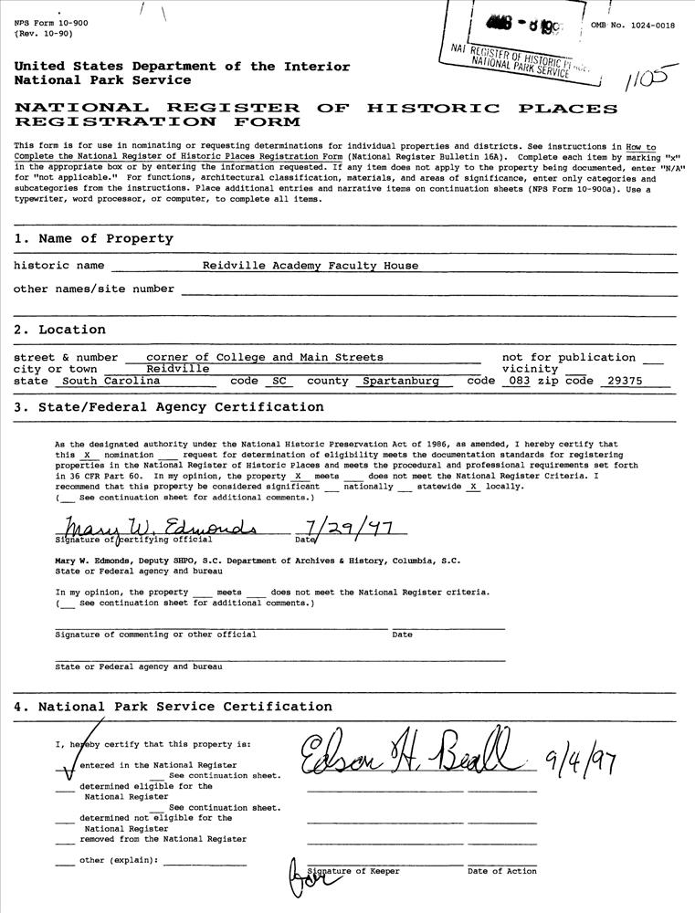 Reidville Academy Faculty House
