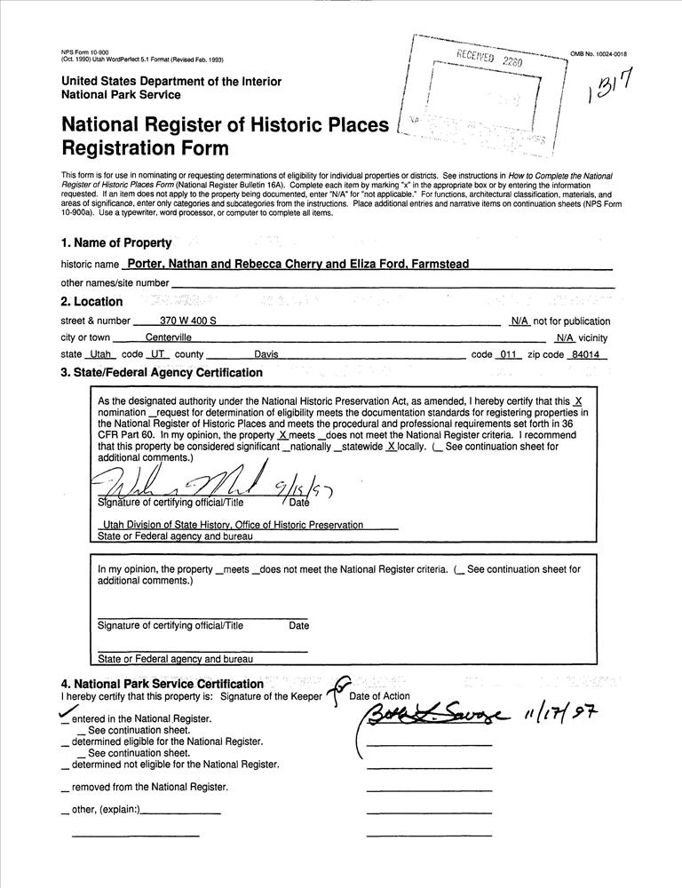 Porter, Nathan and Rebecca Cherry and Eliza Ford, Farmstead