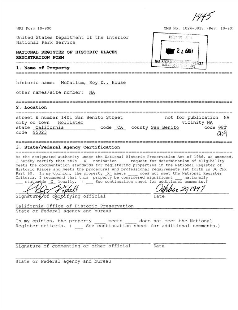 Hollister ; 1401 San Benito St.
