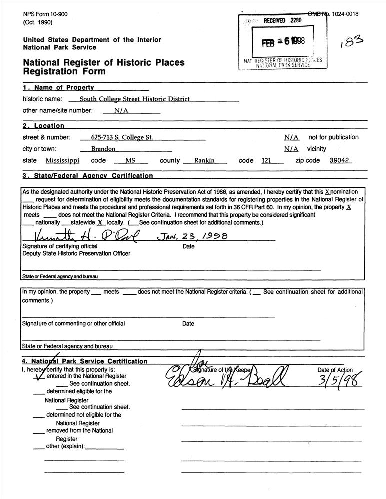 Brandon ; 625-713 S. College St.