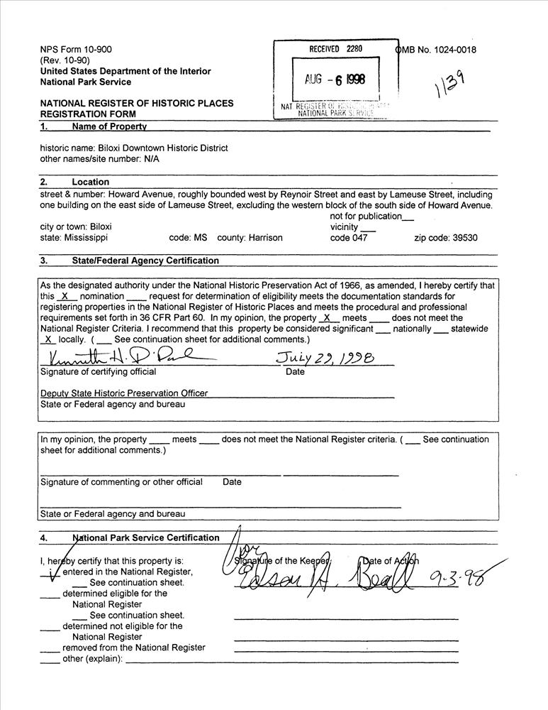 Biloxi ; Roughly along Howard Ave., from Reynoir St. to Lameuse St.
