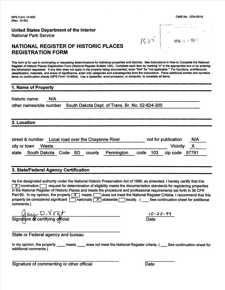 South Dakota Department of Transportation Bridge No. 52-824-300