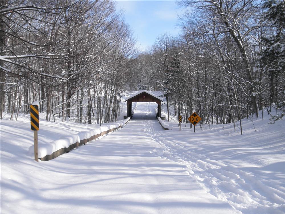 covered bridge pierce stocking scenic drive snow ski snowshoe