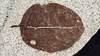 An oval-shaped fossil leaf with veins easily visible.