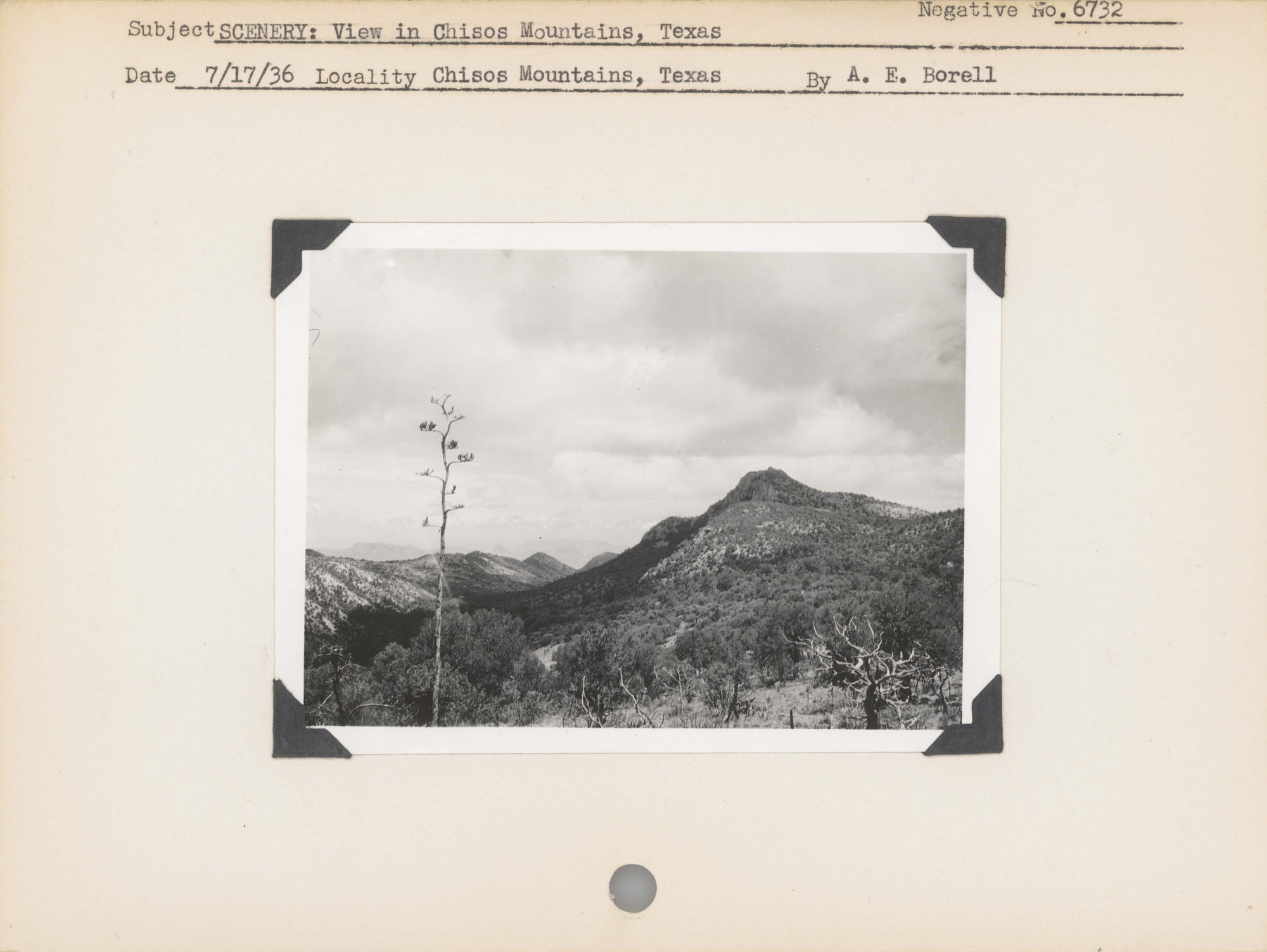 Scenery: View in Chisos Mountains, Texas. Negative #: 6732. Locality: Chisos Mountains, Texas [Big Bend National Park].