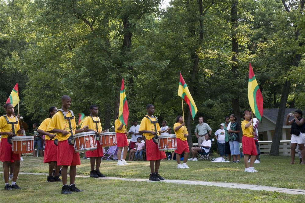 Cuyahoga Valley National Park (CVNP) and Cuyahoga Valley National Park Association present Get Up, Get Out & Go!, a campaign introducing recreational opportunities along the Ohio & Erie Canal Towpath Trail in Akron and the national park. The program targets residents in the urban neighborhoods surrounding the Towpath Trail in Akron which is a part of the larger Ohio & Erie Canalway, a national heritage area. Get Up, Get Out & Go! serves as an invitation for kids 11 to 14 years old and their families to give the Towpath Trail a try and to venture further along the trail into CVNP. || Visitors listen to an Akron youth marching band at the Get Up, Get Out, Go! kickoff event in June 2007.