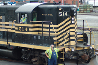Employees wait for instruction by No. 514 in moving the Big Boy
