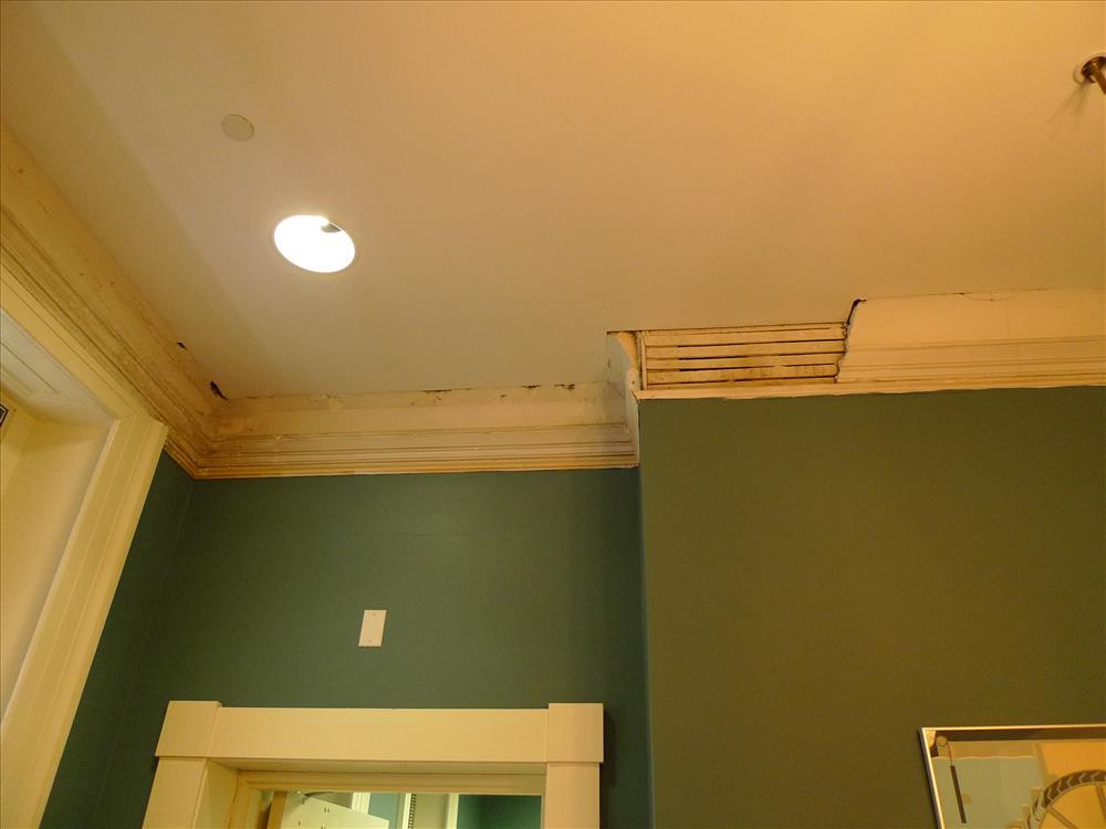 Kirk Street Agents Hosue deteriorated plaster cornice, Lowell MA, 2015