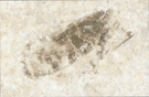 A side view of a fossil bee. The wing with veins and the legs are easily visible.