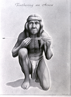 Drilling clamshells for Native American beads. Copy of a drawing.
