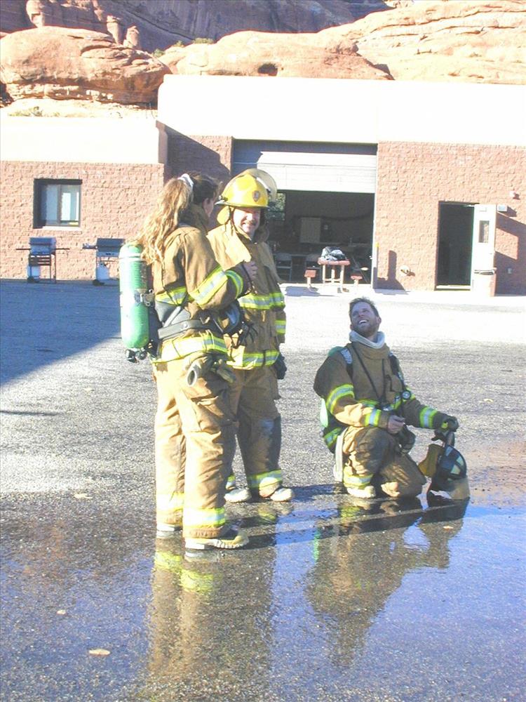 Firefighter crew photos during structural fire training at Mesa Verde National Park, 2001